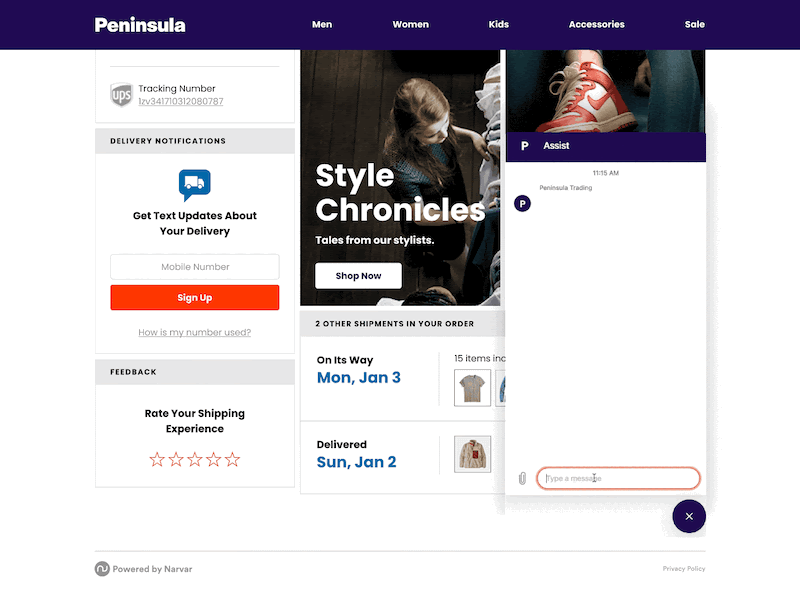 From a 30,000 foot view, Zendesk and Narvar are taking order transparency to new heights. From Narvar’s track page, shoppers can start a conversation with a Zendesk bot or agent to address any number of order-related questions (e.g. “Where is my order?”) or requests (e.g. “Update my delivery address”). There’s no need to visit a brand’s website or separate customer support portal—the entirety of the engagement can occur within the track page.