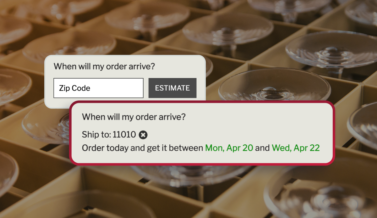 Parcel shipments sent via FedEx and UPS use Narvar’s predictive delivery algorithms. Larger items that ship via LTL freight use customized delivery windows that account for preparation time and extended transit ranges.